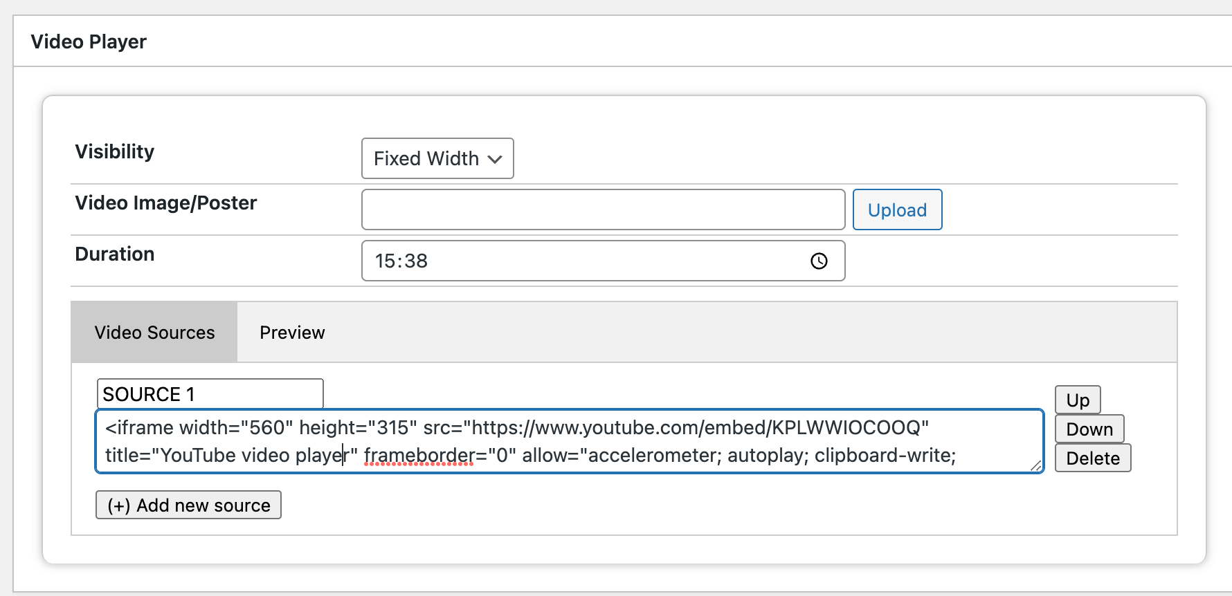 - Video Image/Poster: This section is only needed to specify the poster displayed on the "FluidPlayer" playback screen. Embed/Iframe is invalid for videos.